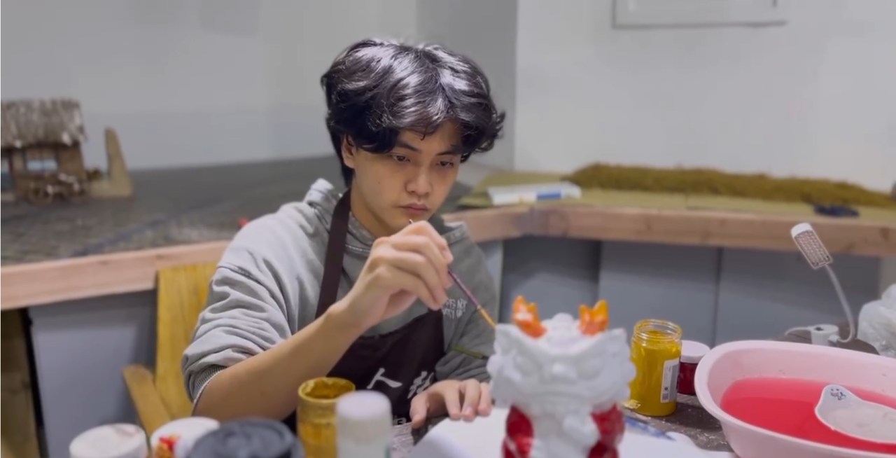 AI可以高效生成形态各异的3D模型,但如何让这些作品真正具备非遗文化的韵味?吴驯博带着AI生成的初稿,与他的长辈和团队伙伴一遍遍探讨。最终,团队决定引入手工雕刻的“随机性”作为数据训练的一部分,让AI生成的作品更具自然感。最终,他们成功开发了山海经系列神兽摆件和关东泥人现代化定制版,在年轻消费者群体中获得了广泛关注。
