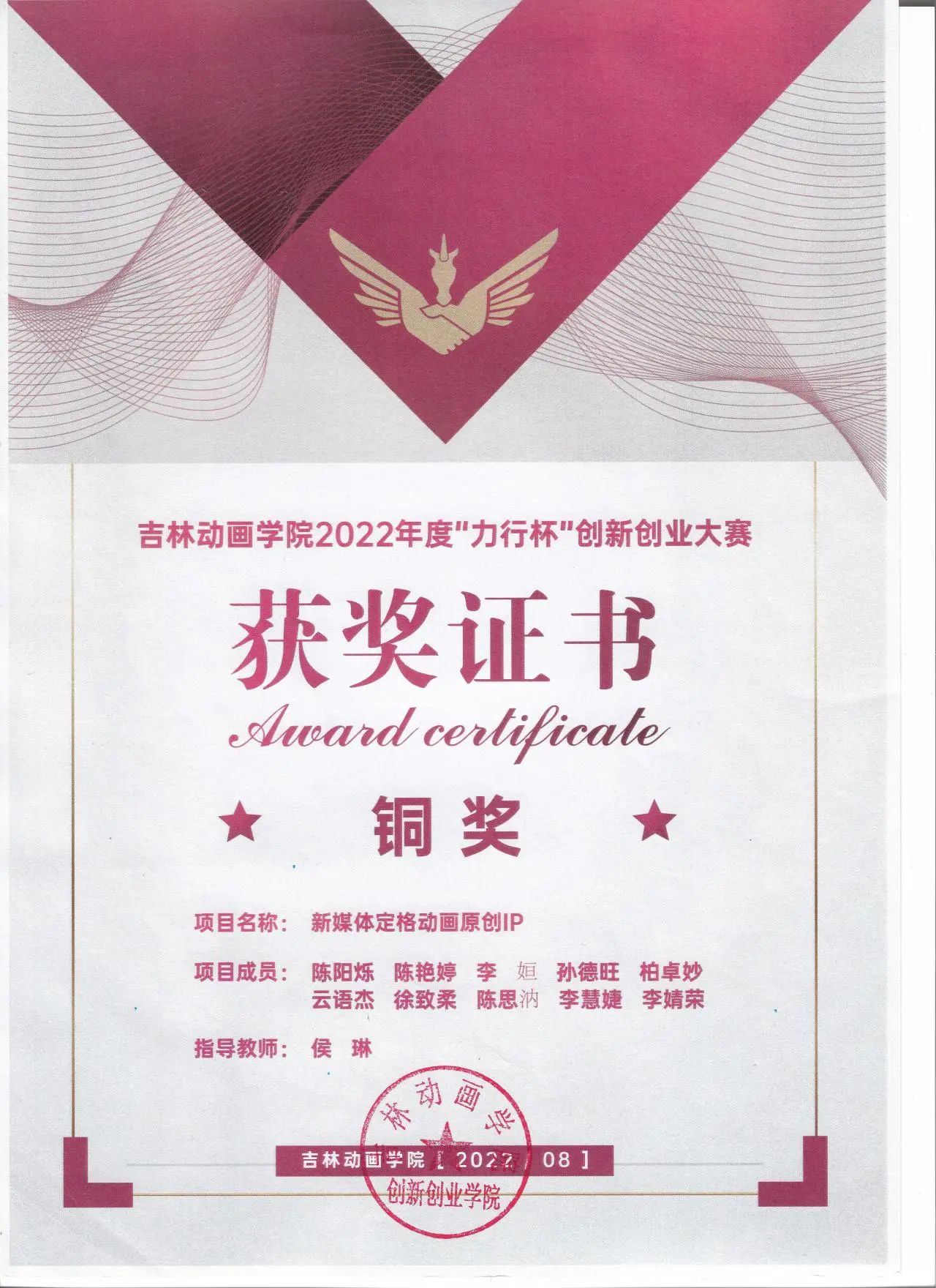2022年,“早吧动画”项目团队的原创短片《沧海横流》前期筹备工作在实体环境中展开,团队在学校F楼的一间教室里建立了创作基地,这间教室成为了团队梦想的起点,团队成员们共同探讨、研究、创作,碰撞出无数灵感的火花。《沧海横流》项目在学校2022年度“力行杯”创新创业大赛中获得了铜奖。与此同时,“早吧动画”团队与黑箱动画社团展开深度合作,这些新鲜血液为团队注入了新的活力与创意,使团队的创作内容更加丰富多元,也为团队未来的发展奠定了坚实基础。