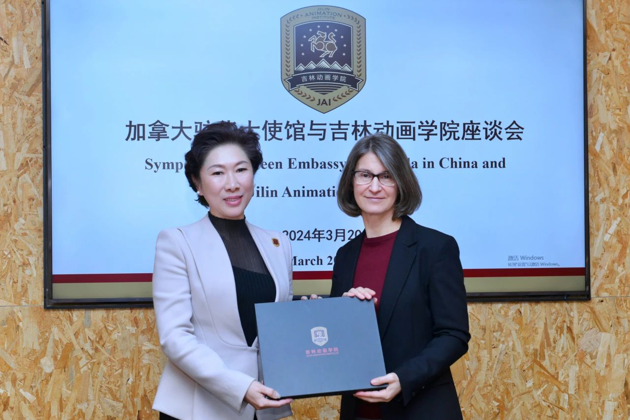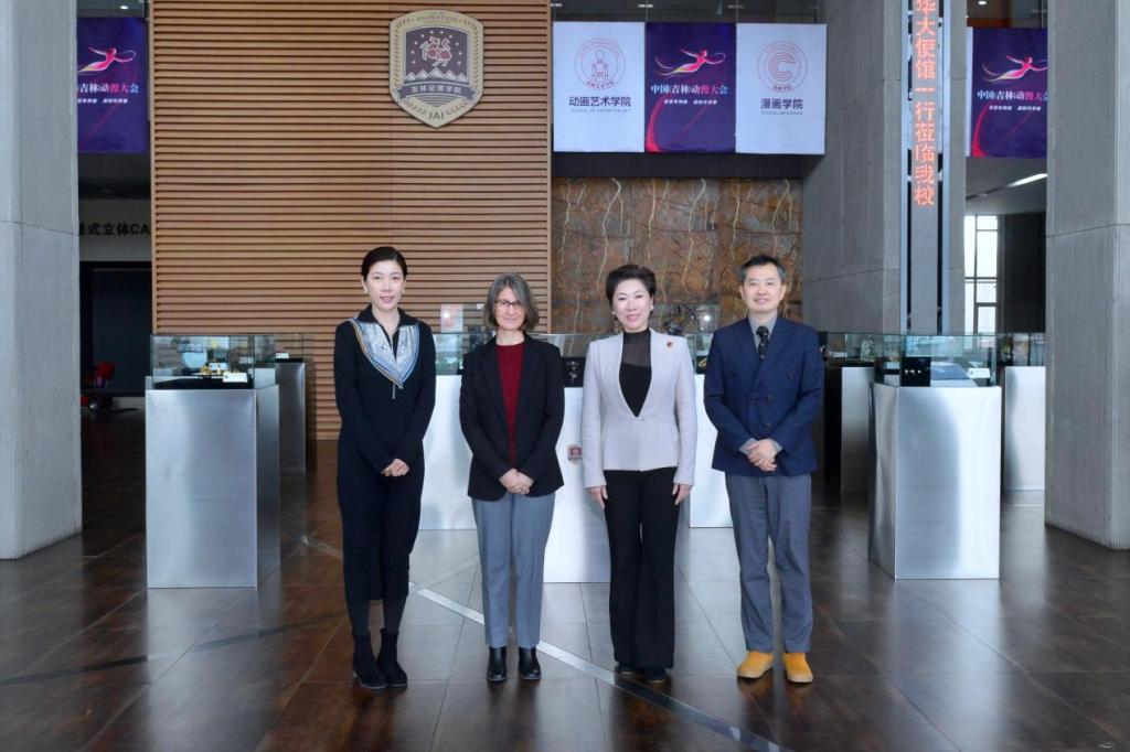 参观结束后,双方进行了友好座谈。刘欣向来访嘉宾介绍了学校办学及国际交流方面相关情况,并详细介绍了学校“开放式国际化”“学研产一体化”办学特色,以及学校在专业建设、创新创业、电影工业化体系建设和“技术+艺术”融合发展等方面所取得的成果。双方围绕与加拿大高校及企业合作等方面进行了探讨。白林女士表示将助推学校与加拿大相关动画及影视类高校开展相关合作,对学校与加拿大高等教育方面的合作给予充分的支持。