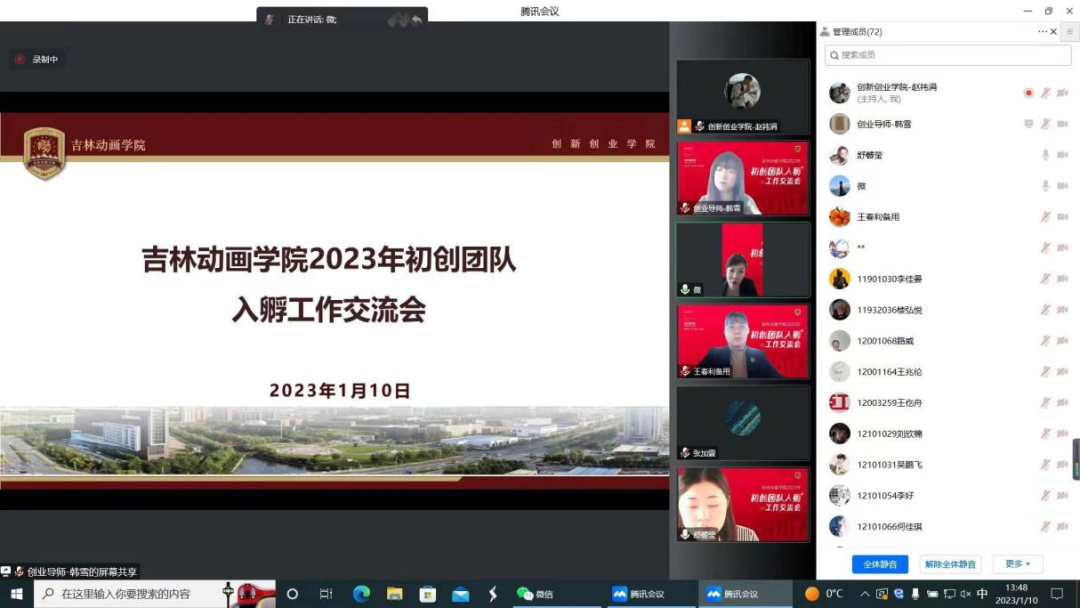 会议主要围绕创业服务规划的解读及创业相关资源发布方面展开。创业孵化办公室全体创业导师和动画艺术学院、动画产业学院、漫画学院、游戏学院、虚拟现实学院、电影学院、文商学院的学生团队、师生共创团队共计近40个初创团队参加本次线上交流会。