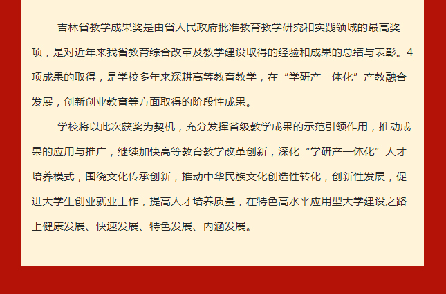 【JAI·奖】球盟会qmh4项成果荣获吉林省教学成果奖 发布时间:2023年02月10日 10:33:24 浏览:次 ■ 相关新闻链接 《吉林省人民政府关于表彰吉林省教学成果奖获奖成果的决定》 >>>> 编辑 | 戴 月 责编 | 闫 琦 审校 | 王 舜 于千傲 审核 | 宫 伟