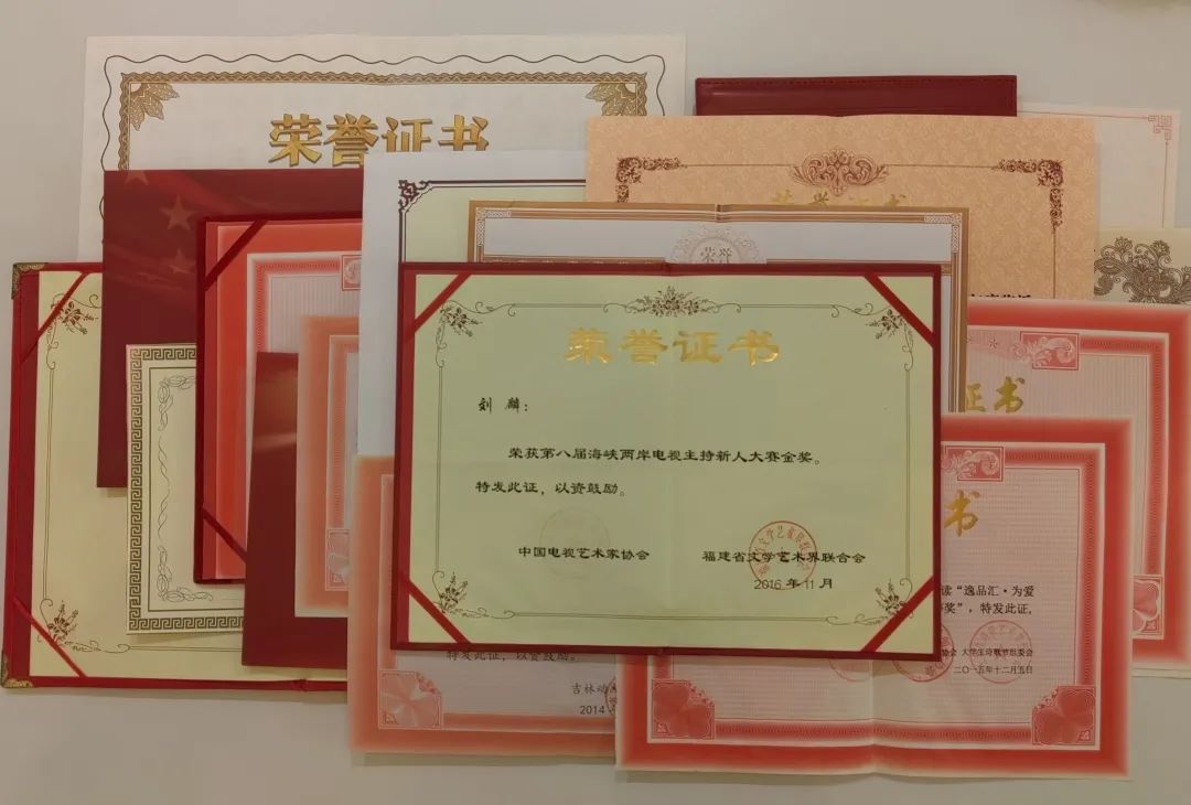 每天在忙忙碌碌中上课、下课,要说转变还得从加入学生会体育部说起。体育部有一项职能是组织同学做早操、领大家跑步,就是这个看似机械、乏味的跑步,让刘麟渐渐跑出了感觉,跑出了自信,跑出了舒适区!他逐渐建立了意志坚定、持之以恒的品性,身体的强壮和自信心使得他有勇气去迎接任何挑战,向着更高、更快、更强目标前进。大二时,在学校举办的第12届主持人大赛上,刘麟初出茅庐,夺了个冠军!这也是他上大学后得到的第一张奖状,他发现原来站在聚光灯下是一件很美好的事情,他也可以成为一个优秀的主持人。为此,他竞争入选学校校园电视台主持人,目标已笃定,剩下的就是在攀登高峰路上的坚持。课业“规定动作”,刘麟认真学习不打折扣,练发声、颂读、咬文嚼字等训练一丝不苟;课余时间“自选动作”刘麟苦练“形体、站姿、表情、衣着、化妆”“练嘴皮”等基本功,主动参加各种主持、演讲等专业性大赛,只要有锻炼的机会他就阵阵不落。大学期间,大大小小的比赛证书他拿了二十多个。这期间令他骄傲的是大四时参加海峡两岸电视主持新人大赛拿到了金奖,这也是他获得的第一个全国性奖项。业精于勤,大三时,他已经成为著名国企一汽集团的男主播了。