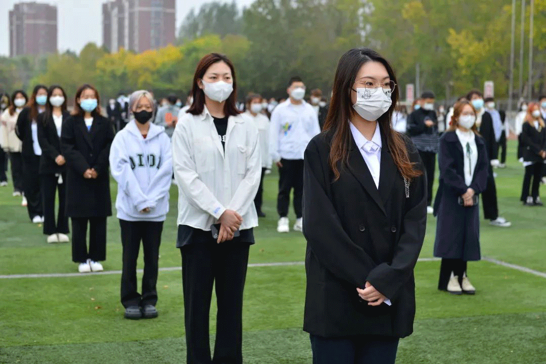 把国旗放在胸口,将国旗印在脸上。升旗仪式后, 2021级王光文依旧心潮澎湃, “很荣幸能够在今年国庆节担任升旗手,自豪感油然而生,站在国旗下送上我对祖国的生日祝福!希望祖国越来越好!”“作为祖国最强后备力量的大学生,希望我们青年人可以肩负起时代的重担,砥砺奋进,争做时代的开拓者和奉献者!”电影学院2020级王春燕和室友在国旗下“比心”拍照。