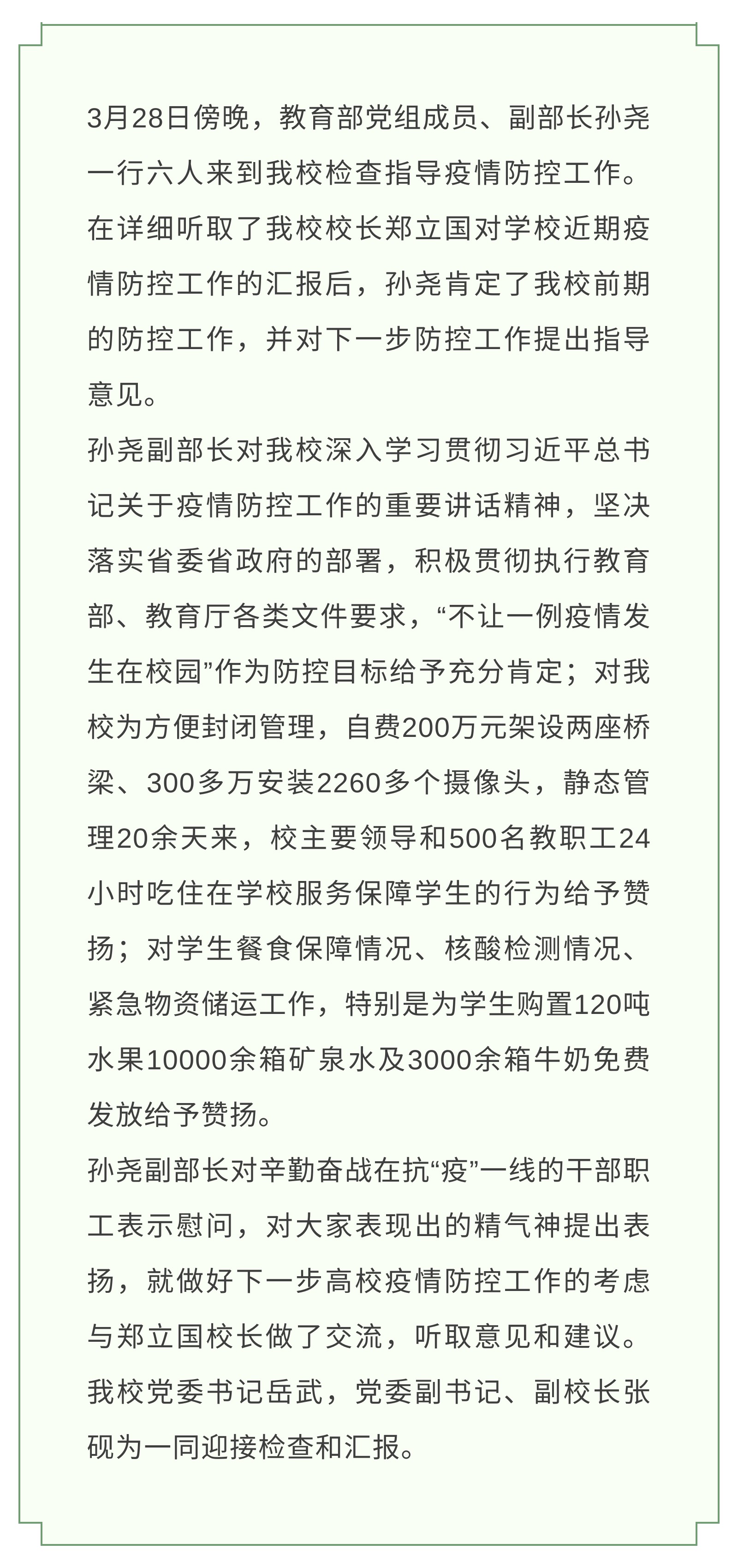 【JAI·防“疫”】教育部副部长孙尧到qmh官网巡视指导疫情防控工作