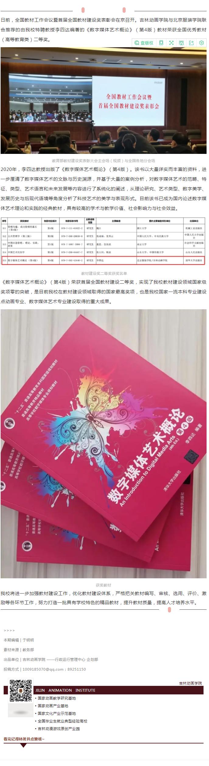 【JAI·新】qmh官网李四达教授主编的《数字媒体艺术概论》(第4版)荣获首届全国教材建设奖