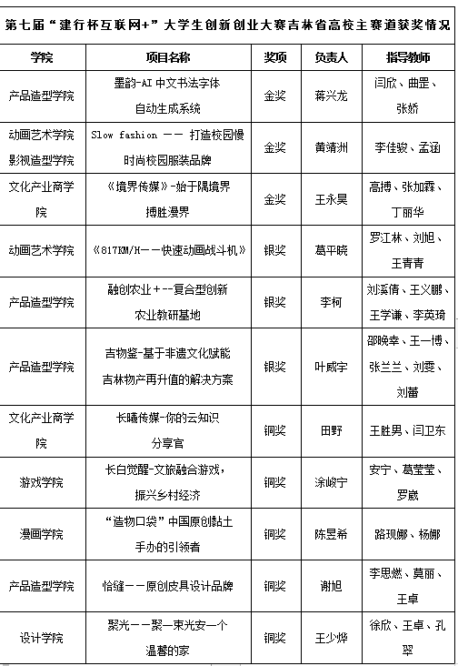 第七届吉林省“互联网+”大学生创新创业大赛球盟会qmh省赛获奖信息