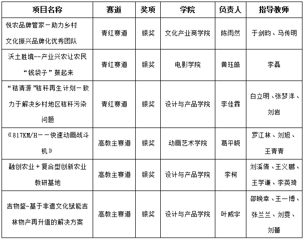 获得银奖项目名单