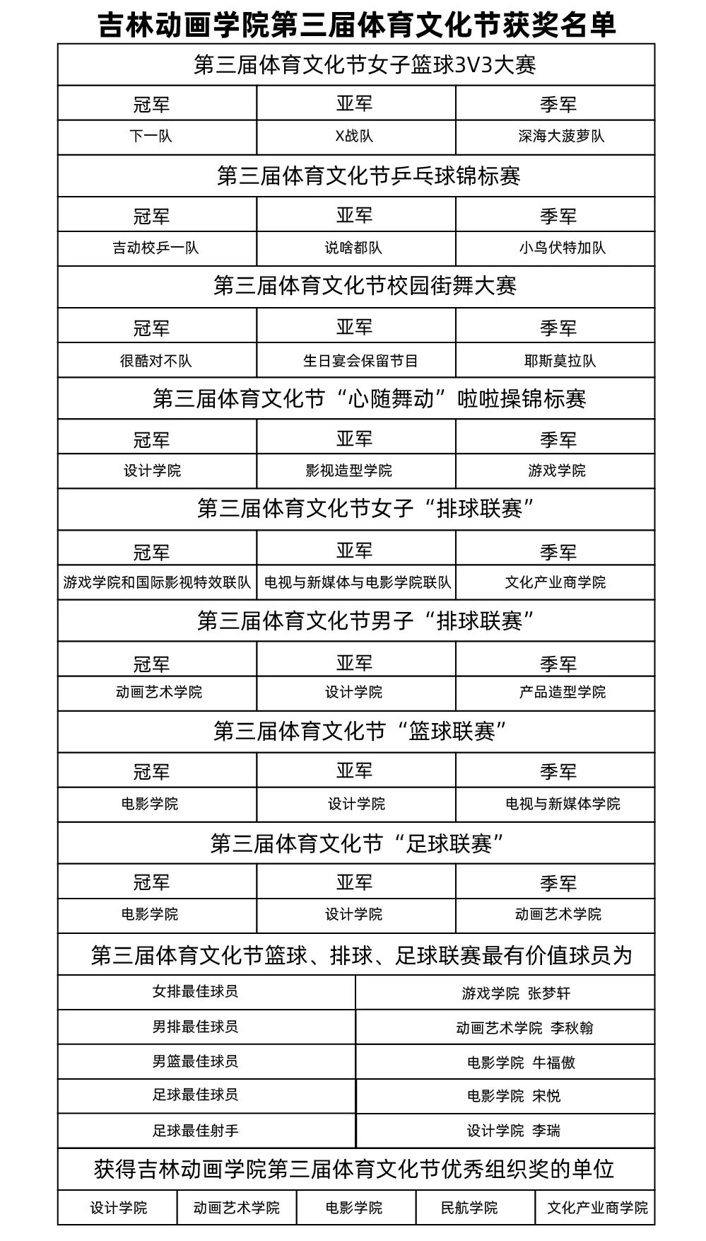 传,吉动体育精神;承,吉动体育力量。历时两个月的第三届体育文化节为我们带来了太多的欢笑与泪水,胜利时的击掌欢呼,失误时的拥抱安慰,受伤后的搀扶照料……都是体育文化节留在赛场上的一段段美好回忆。2021球盟会qmh第三届体育文化节并没有随着闭幕而与我们再见,它所蕴含的吉动体育精神始终伴随着吉动学子一路前行、奋力奔跑。让体育带动青春正能量,用文化托起美好未来!