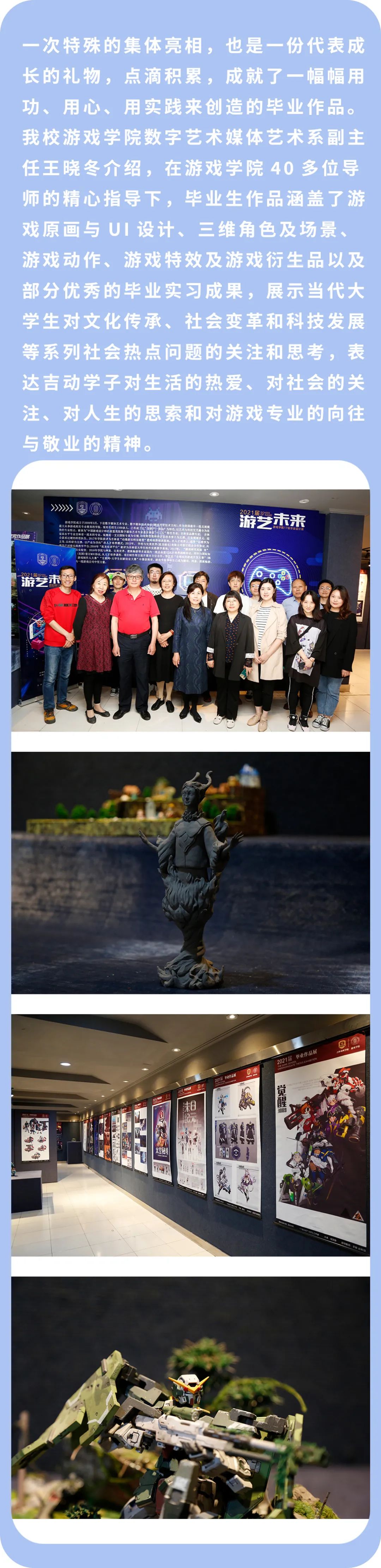 透过这些激荡着创新火花、饱含着青春激情、凝炼着“吉动精神”的优秀毕业作品,我们看到了游戏学院“以教学为主导,以科研为支撑,以产业为导向”人才培养模式的斐然成绩,体会到“动漫游双师双能型”培养和“开放式项目制”的硕果累累。作为我国最早一批且规模最大从事游戏相关专业教育的学院,自2009年成立至今,qmh官网游戏学院培养了3000余名数字媒体艺术及技术专业领域的应用型人才;目前已形成了以”学研产一体化”为特色、以艺术与科技交叉融合为优势的专业特点,被誉为“中国游戏设计师”的摇篮。同时也是吉林省“十二五”特色专业、吉林省品牌专业、吉林省特色高水平专业、吉林省一流本科专业,2021年获评国家级一流本科专业建设点。