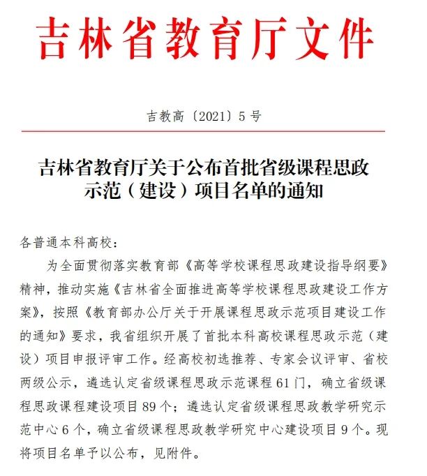 近年来,学校深入贯彻落实《高等学校课程思政建设指导纲要》(教高〔2020〕3号),根据中共吉林省高校工委、吉林省教育厅《吉林省全面推进高等学校课程思政建设工作方案》(吉教高〔2020〕25号)等文件要求,全面推动课程思政改革,强化课程思政建设水平,学校出台了《球盟会qmh“课程思政”教学改革试点工作方案》《球盟会qmh全面推进课程思政建设工作实施方案》等文件,开展了“学科育人示范课程”“课程思政示范(建设)项目”“课程思政教学研究项目”“课程思政教学案例库”等一系列建设工作,深挖各类课程的思政育人功能,提升立德树人成效和人才培养质量。