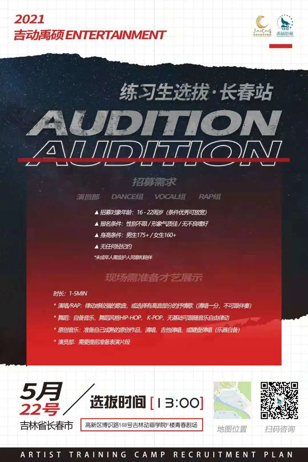 只要你怀揣梦想,并对唱跳、唱作、表演拥有浓厚的兴趣,或有一定的基础,且希望在娱乐圈有所发展,即可参与报名!