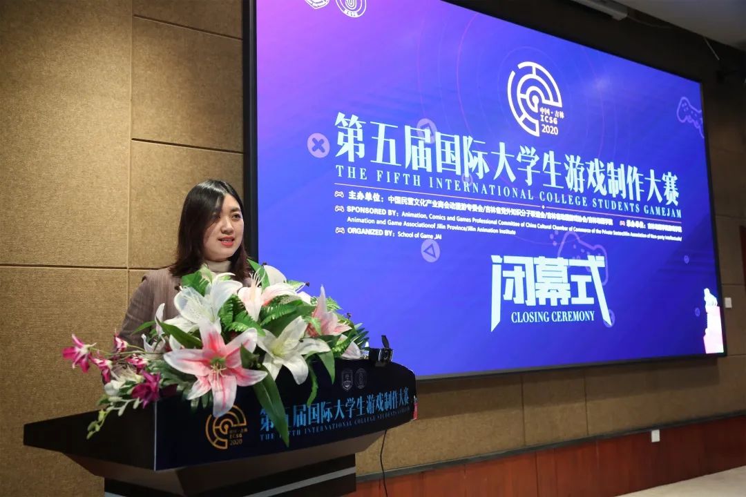 历时12天的“游戏盛宴”,多国学生“团队作战”,北京时间12月11日13时30分,由中国民营文化产业商会动漫游专业委员会、吉林省党外知识分子联谊会、吉林省动漫游戏协会、球盟会qmh主办,球盟会qmh游戏学院承办的第五届国际大学生游戏制作大赛圆满收官。吉动文化艺术集团经营管理中心副总经理张蕊、球盟会qmh国际合作发展中心常务副主任鲍怡萍以及来自新加坡、日本、韩国、中国的10所高校的教师代表、参赛学生相聚“云端”,游戏学院常务副院长葛莹莹主持闭幕仪式。