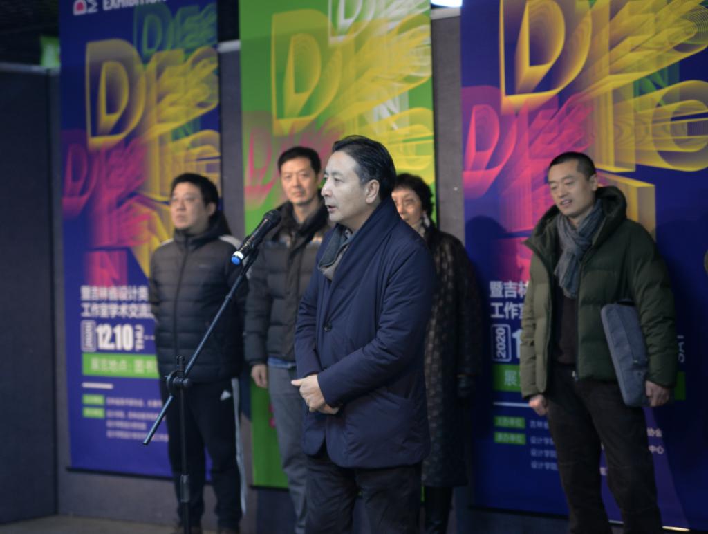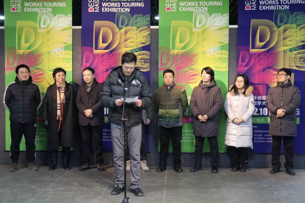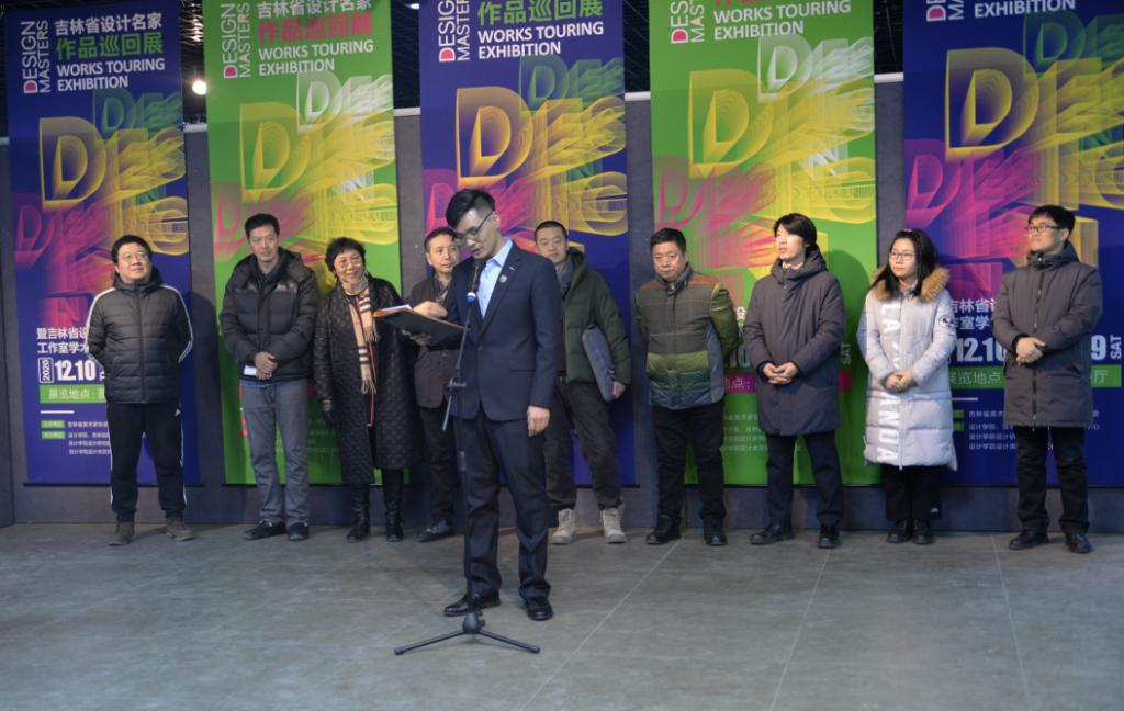 吉林省美术家协会设计艺术委员会主任董赤教授首先致辞,他表示此次展览共展出吉林省22位设计名师的42件设计作品,反映了吉林省室内设计界的较高水平,体现了融合创新的设计理念和前沿技术,并预祝展览取得圆满成功。随后,由吉林省美术家协会副秘书长高岭宣布“吉林省设计名家作品巡回展暨吉林省设计类双师双能工作室学术交流活动”正式开幕,师生共同参观展览。
