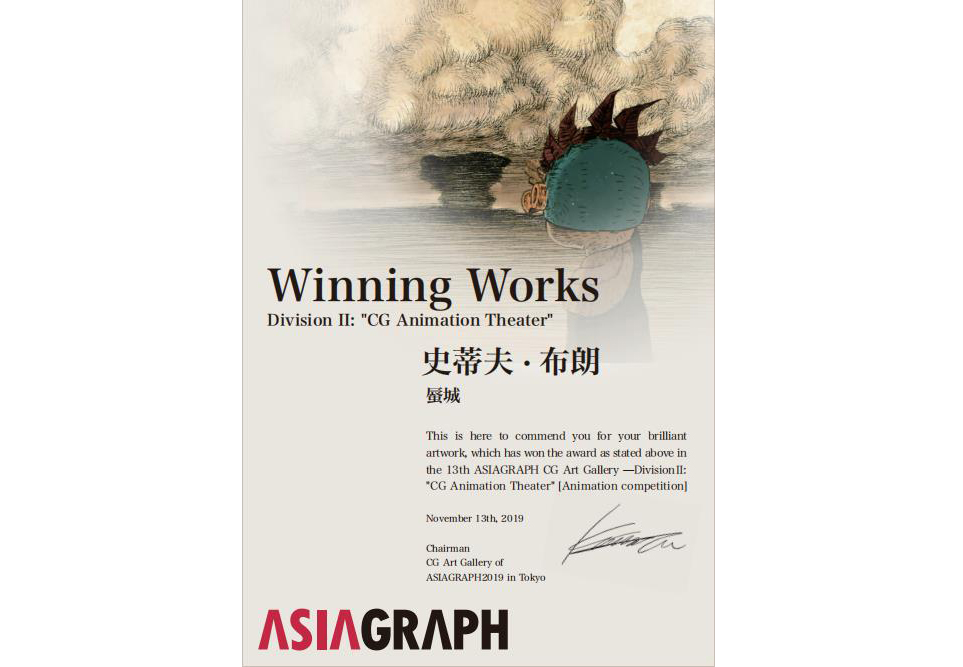 热烈祝贺qmh官网动画艺术学院选送的短片作品《蜃城》在2019年11月日本举办的第13届亚洲艺术学会活动(ASIAGRAPH)“CG动画剧场”单元获奖。