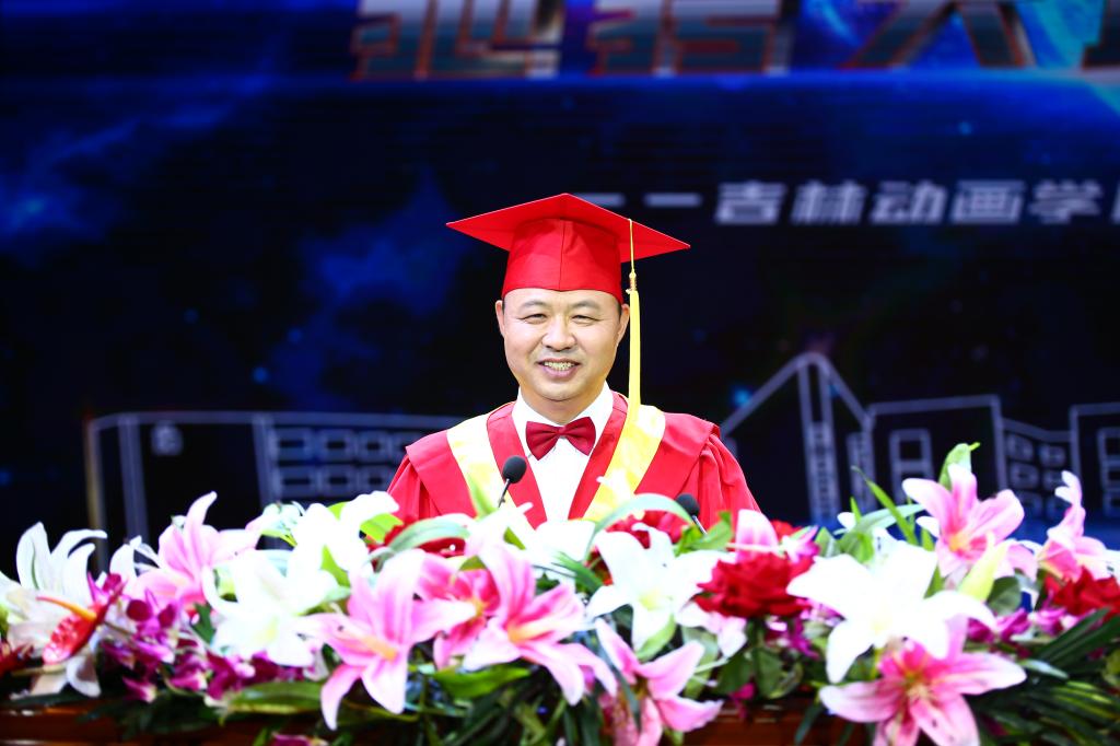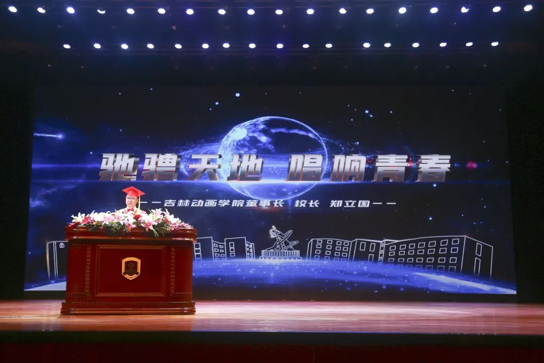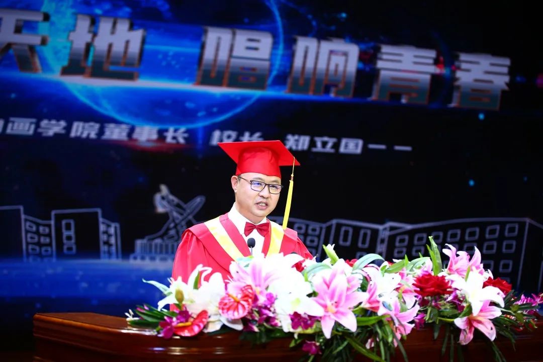 大学四年的时光,正如刚才视频中你们入学报到、学习专业、实践创作、收获成长,在球盟会qmh的一点一滴汇聚成让你们一生难忘的光影;大学四年的旅程,正如母校为你们在学业积累、职业发展、创业支持上铺就的道路,实施精准人才培养,引进国内、国际行业专家,配备充足的实践设备设施,为你们夯实专业、强化实践搭建平台,为你们实现创意、拓宽视野搭建舞台!