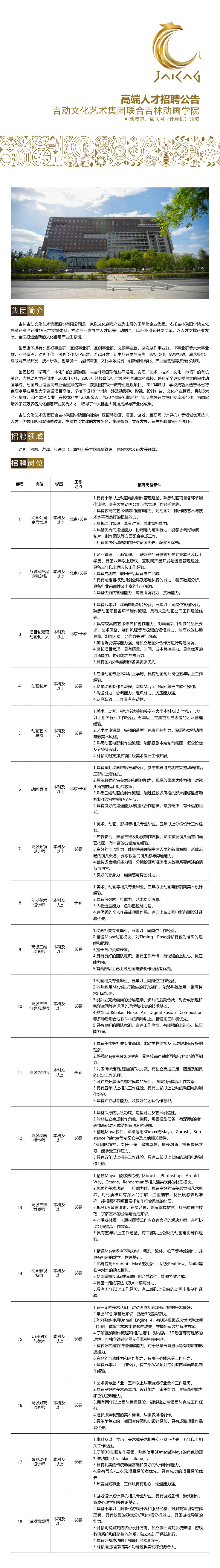 【吉动·速围观】吉动文化艺术集团联合球盟会qmh发布高端人才招聘公告[动漫游、互联网(计算机)领域]