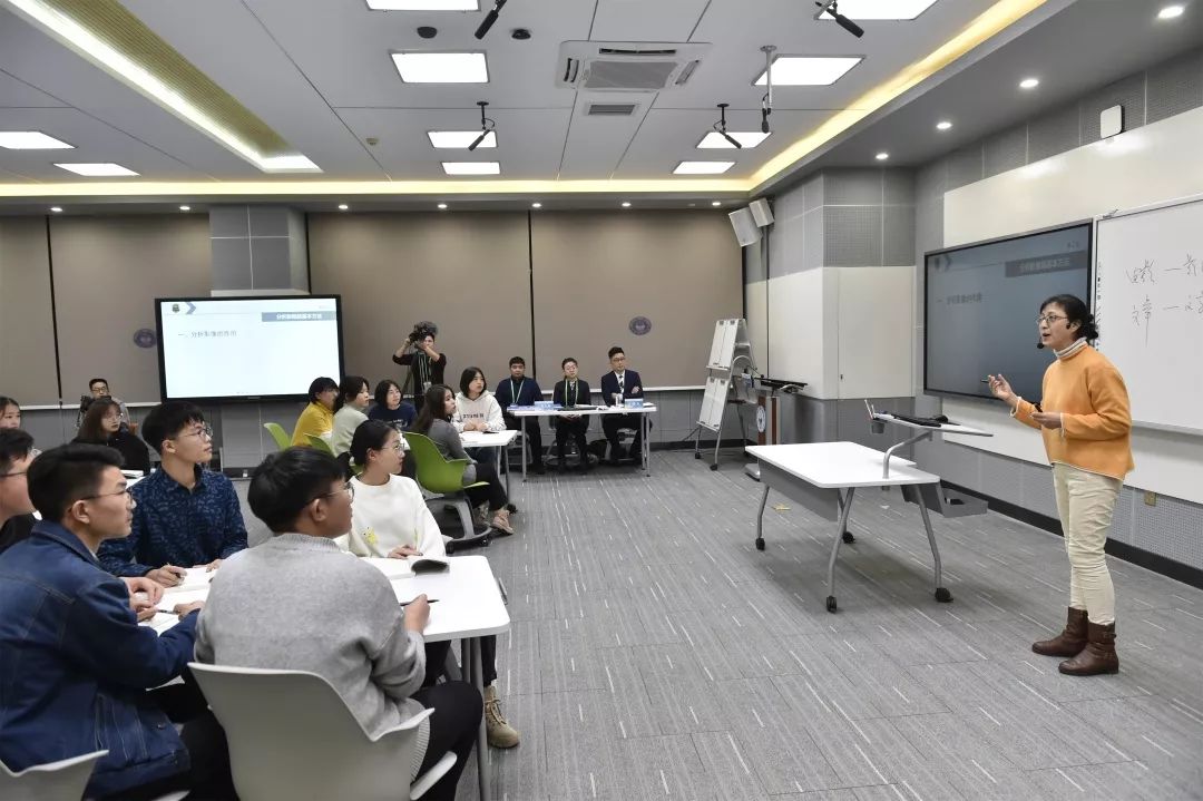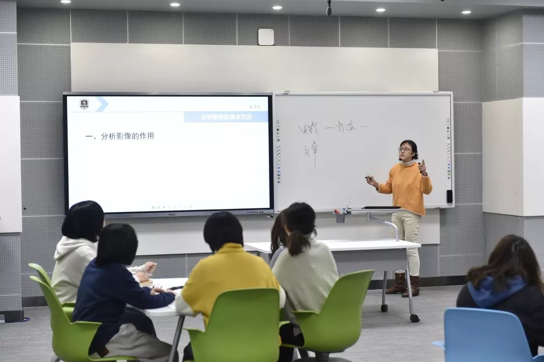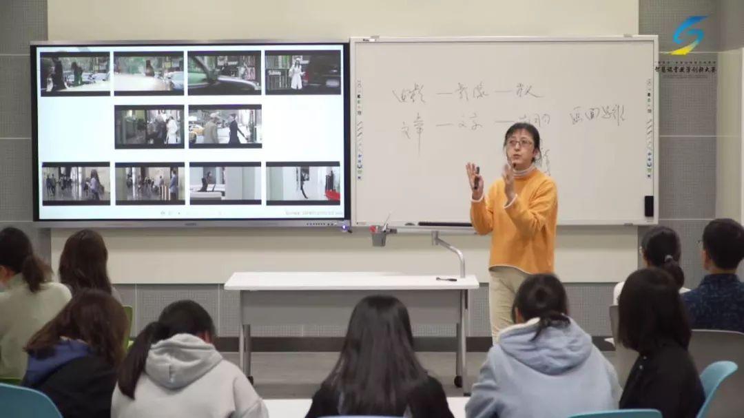 又一次面对更为严峻的挑战,赵玲老师冷静分析了一下,她是在15名教师小组中唯一一个讲艺术类课程的,所以如何能把课讲的让大家都听懂,讲出自己的风格、特色,放大自己的强项,规避弱项,这是她考虑的。最重要的还要体现“智慧课堂”的核心,就是完全不同于传统课堂的老师讲什么学生就听什么,而是学生想知道什么,你先要“抓”住学生,然后带到你的轨道上来。在课程设计上,赵玲老师采取层层递进的“战略”,先问一个非常简单的问题,比如“苹果是什么颜色的”,很多学生会回答“红色”,那她接着会问“为什么是红颜色?”可能接着会问,“为什么苹果会有红有绿呢?”就是由最简单的问题切入进来,把所有学生带进到课程设计中来,引发他们的兴趣,然后由浅入深地讲。现在的学生知识结构、知识储备完全能够理解书本上字面的意思,照本宣科肯定是不行的,要注重学生应用能力的培养。在讲“视听语言”时,她选择三个影视作品的片段来放,展示出来,用什么镜头;构建时间,镜头长短,什么景别,人物怎么出场,很多很多,都是通过这种实例让学生可以一目了然。“15名大一的编导学生他们表现得非常好,我不会去提前把所有问题都去‘排练’好,我觉得那样很假,课堂反应不真实。”所以,她只是跟学生说了下比赛的规则,要严格控制好时间,不管会与不会都要回答。