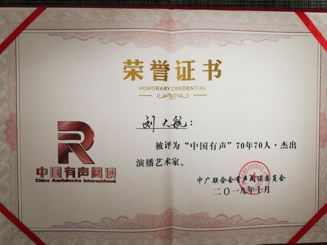 10月30日,由中广联合会有声阅读委员会主办的“中国有声”——70年70部·优秀有声阅读文学作品、70年70人·杰出演播艺术家发布会在北京广播大厦隆重举行。球盟会qmh电视与新媒体学院教师刘大航应邀参加颁奖仪式,并获“70年70人杰出演播艺术家称号”。