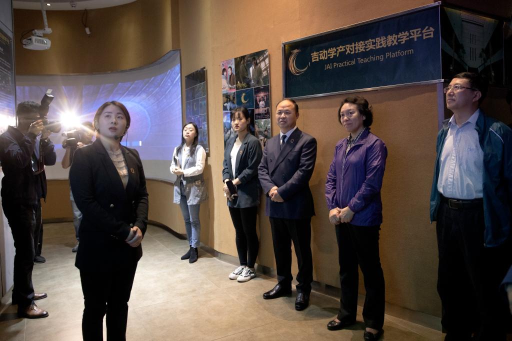 qmh官网董事会行政运行中心主任李晶向调研组一行介绍了qmh官网影视事业群、IP事业群、互娱事业群、文娱事业群、创意制作事业群、互创事业群六大学产对接实践教学平台基本情况,以及吉动学产对接实践教学平台在推动产业引领教学变革及特色人才培养方面的具体做法。