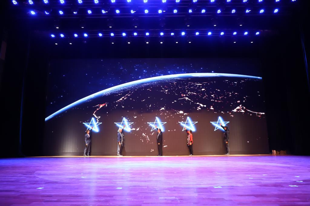 吉动艺人训练营在球盟会qmh董事长、校长郑立国,知名电影艺术家曾江,北京电影学院表演教授、知名演员李苒苒,音乐创作人、知名作词人代岳东,导演、编剧、演员李克龙的启动下正式开启。五位领导、嘉宾手掌按向大屏幕,五颗星星发出一束束光芒汇聚成“艺人训练营”五个字,预示着球盟会qmh、吉动文化艺术集团将会培养出更多优秀人才。