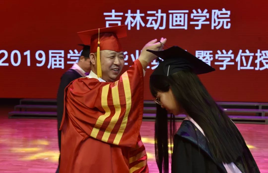 毕业典礼上,学校副校长王春利宣读准予2019届张兆坤等3022名学生毕业的决定;学校董事会监事、总督学、学位评定委员会副主任朱莉宣读授予2019届2985名学生学士学位的决定;学校党委书记、省教育厅督导专员张炬宣读授予王莹等150名学生2019届优秀毕业生的决定;学校副董事长、副校长刘欣宣读表彰2019届毕业生平台力行奖学金获得者的决定;学校副校长、吉动文化艺术集团高级副总裁白立明宣读收藏2019届优秀实物毕业作品的决定。
