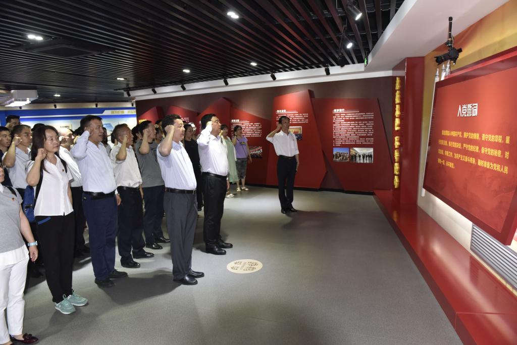 在参观活动中,现场氛围严肃。一个个鲜活的典型案例,一句句警醒深刻的话语,无不使大家心灵受到巨大震撼与触动。在参观活动结束时,全体党员还面对鲜红党旗进行了庄严宣誓。
