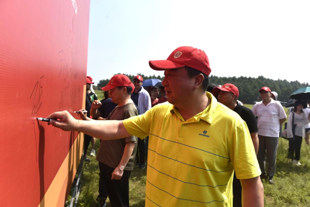 而吉动文化艺术集团这边不仅有破冰游戏“爱的抱抱”——打破人际交往间的藩篱,拉近企业团员之间的距离,更在青天、白云和绿草的映衬下,由董事长郑立国率领各大事业群的员工同心协力完成了一幅长15米,宽10米具有企业文化代表意义的巨幅画作。当一副巨大的画面直观成像在眼前的时候,每一位参与者对企业的归宿感油然而生,整个制作过程中,团队成员相互协作,增进团队成员间的凝聚力。