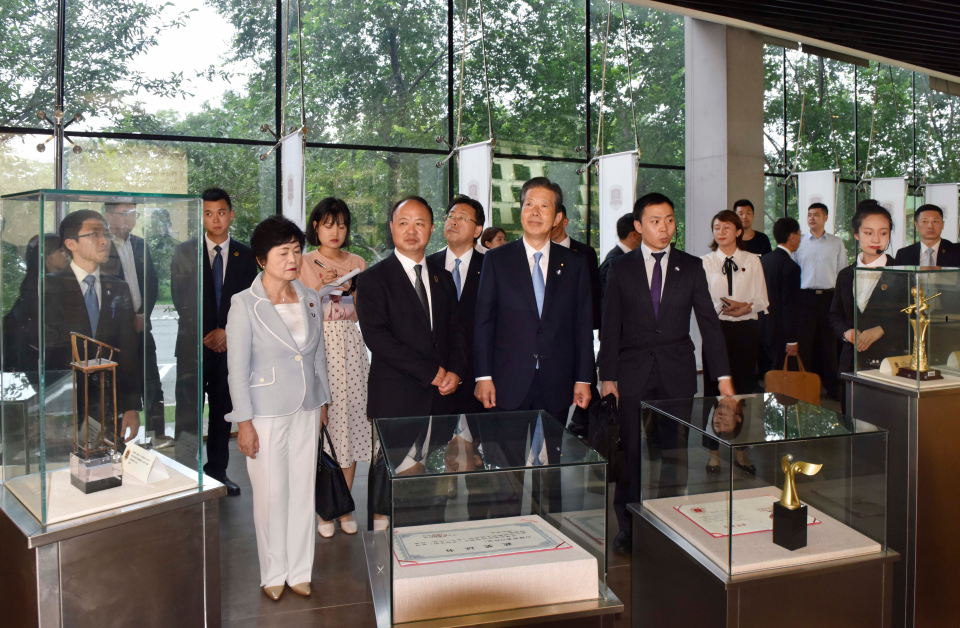 8月18日下午,日本公明党党首、参议员山口那津男一行,在中共中央对外联络部二局副局长康帅,吉林省外事办公室副主任郑刚的陪同下,对qmh官网进行访问。球盟会qmh董事长、校长郑立国,球盟会qmh以及吉动文化艺术集团高级副总裁李晶陪同参观考察。