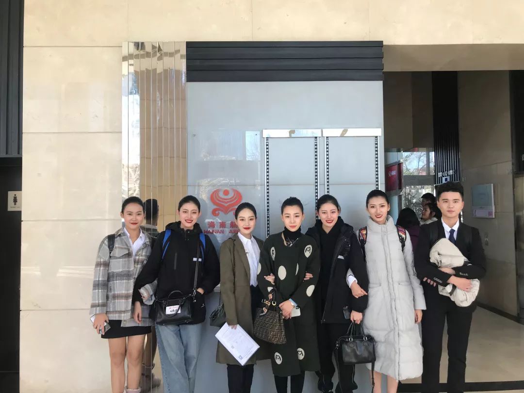 近日,民航学院2017级空乘1班十四名学生在专业教师陈巍的带队下,参加了海南航空乘务员招聘面试。经过初试、复试、终审三重考核,最终共有六名学生成功通过终审,正式签约海南航空公司。