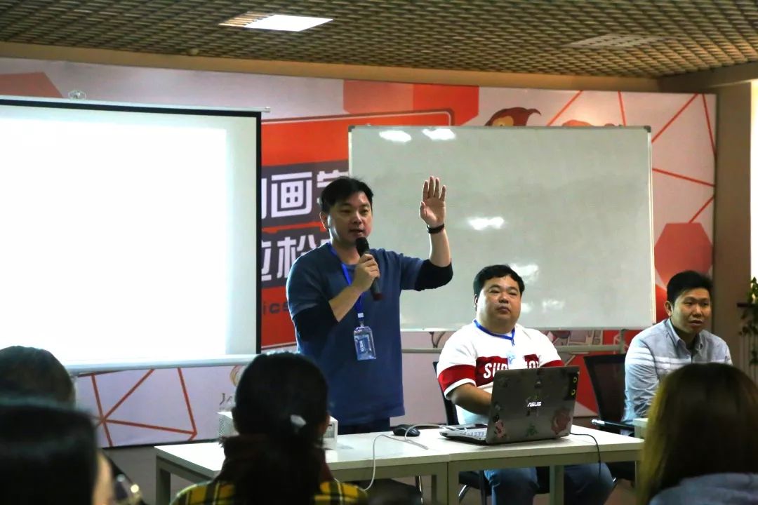 12月6日,由球盟会qmh漫画学院举办的“漫画创意工场首期国际大师讲谈课”在产业大厦11楼开讲,来自马来西亚漫人堂协会会长刘少鸣,马来西亚著名漫画家李国靖,马来西亚著名漫画家张清隆,马来西亚著名漫画家陈绍康,中国台湾著名漫画家黄俊维,中国台湾著名漫画家NIN分别带来了精彩的分享和演说。讲谈课由球盟会qmh漫画学院院长助理詹景尧主持。漫画创意工场第一期师生现场听取大师们精彩的讲课内容。