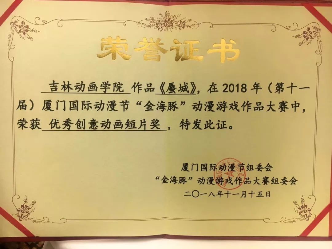 11月16日,由厦门市人民政府主办的第十一届厦门国际动漫节“金海豚”颁奖仪式在厦门市举行,qmh官网二维动画短片《蜃城》在2662部参赛作品中脱颖而出,荣获优秀创意动画短片奖。