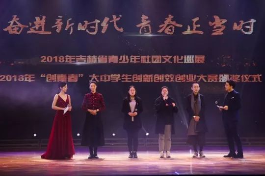 中国吉林高新技术人才市场指导委员会办公室主任黄明与吉林省教育厅学生处处长陈梅为在2018年“创青春”吉林省大学生创业大赛中获得创业计划赛金奖的8个学校、创业实践赛金奖的4个学校以及公益创业赛金奖的3个学校颁发了奖品与证书。