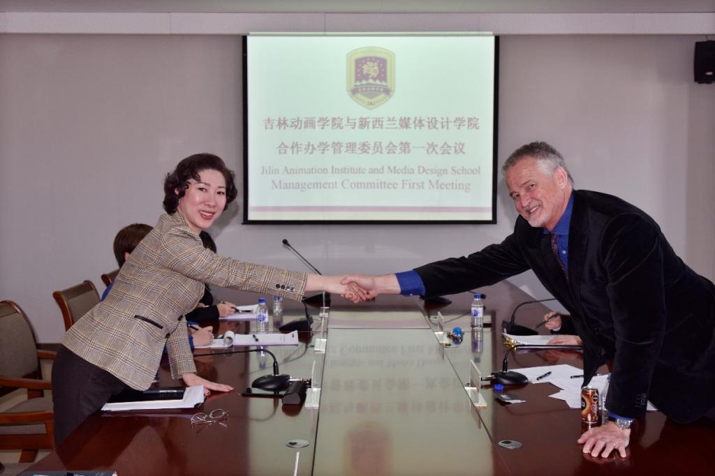 2018年11月27日,球盟会qmh与新西兰媒体设计学院(MDS)合作办学联合管理委员会(以下简称:联合管理委员会)第一次会议在球盟会qmh举行。新西兰媒体设计学院副院长史蒂夫•多纳 (Steve Dorner),球盟会qmh副董事长、副校长刘欣,国际影视特效学院副院长张蕊,国际合作与论坛办公室主任鲍怡萍,教务部副部长王莉莉出席了此次会议。会议由球盟会qmh国际合作与论坛办公室副主任黄百州主持。