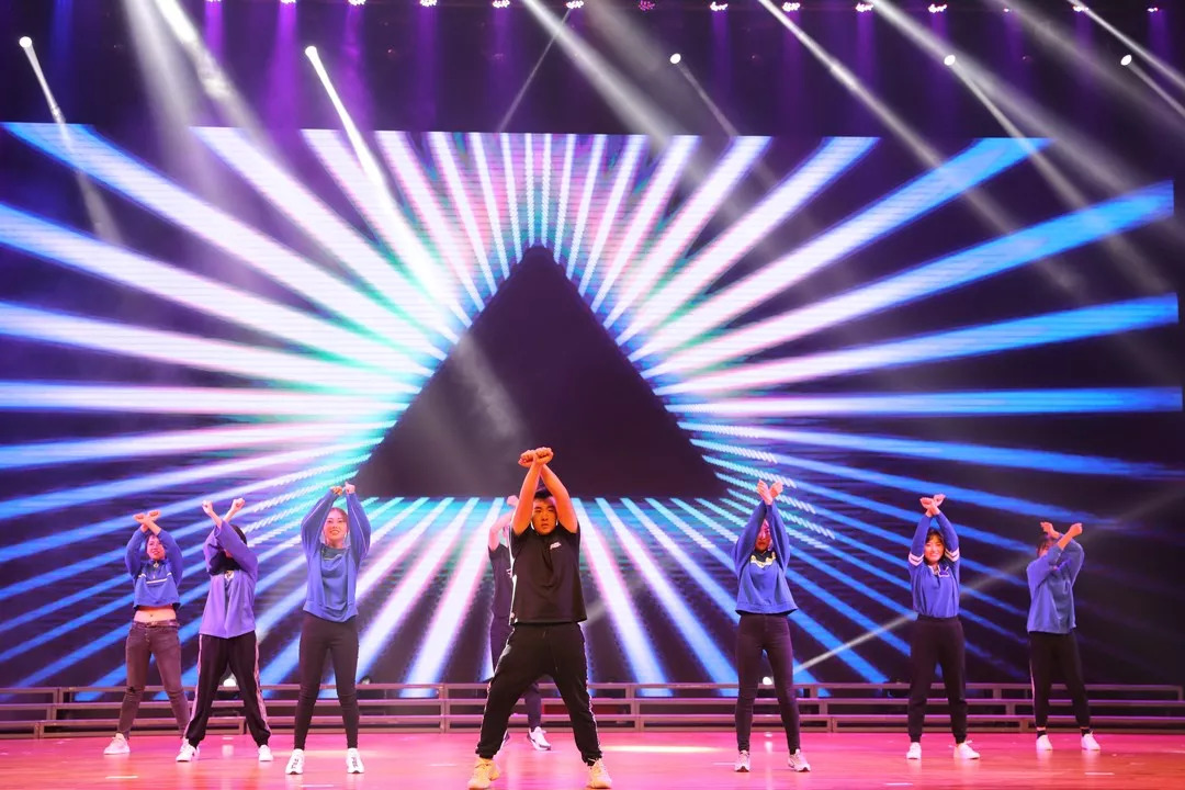 伴随热烈的掌声,开场舞《青春进行时》精彩纷呈,魅力四射,调动起了全场的气氛,拉开了这场诗歌展演的序幕。紧接着,各分院节目轮番登场,场面宏大,扣人心弦。动画艺术学院师生表演的《我与母校共成长》回顾了球盟会qmh18年来的发展历程,“我不去想是否能成功,既然选择了动画,便只顾风雨兼程。”;漫画学院师生的《鼓舞吉动心澎湃,跃马扬鞭指未来》将大气磅礴的音乐与舞台表演相结合,为现场观众带来了一场视听盛宴;游戏学院朗诵的《献礼吉动十八》以吉动学子的口吻,抒发了对球盟会qmh的无限赞誉;电视与新媒体学院、民航学院、虚拟现实学院、影视造型学院、文化产业商学院等12个学院结合本专业特色都创作出了非常精彩的诗歌朗诵作品。师生们青春朝气、铿锵有力又饱含深情的气势,赢得了现场阵阵掌声。