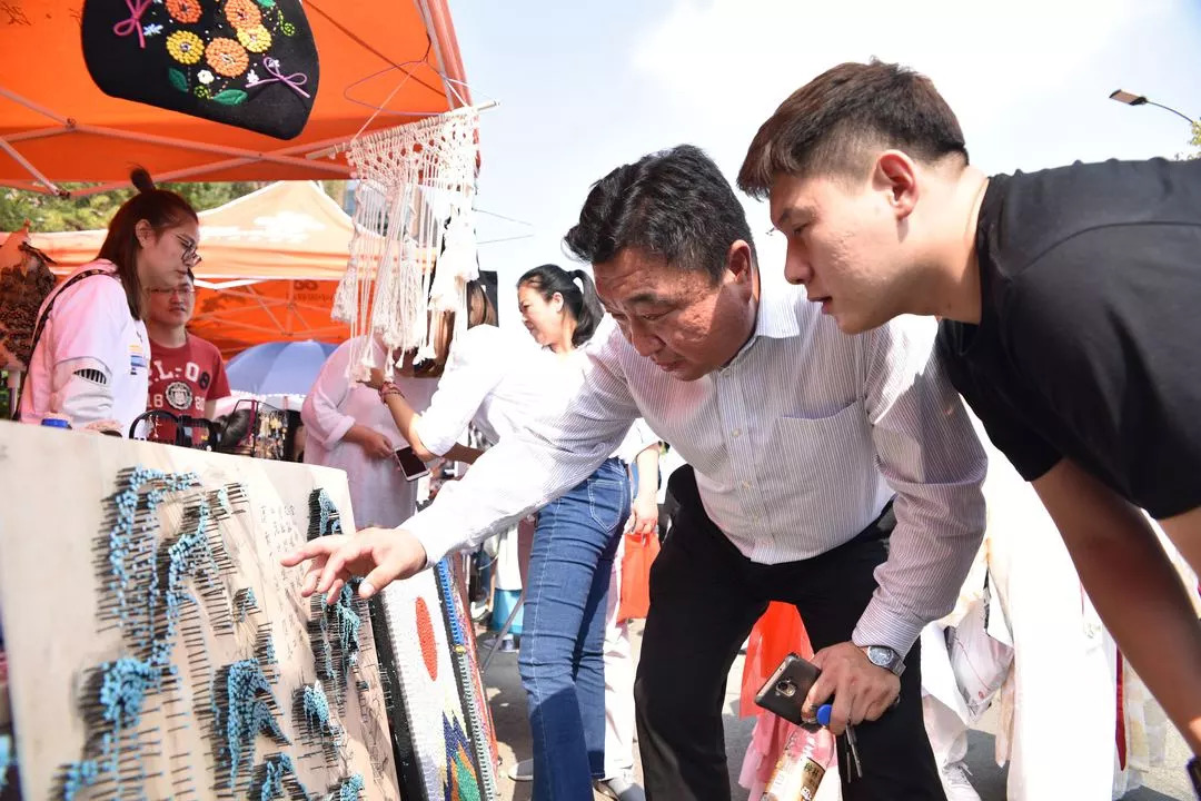 球盟会qmh董事长、校长郑立国,党委书记张炬,常务副校长胡维革,副董事长、副校长刘欣、副校长王春利等学校领导以及吉动文化艺术集团、互创世界、各教学单位的领导和学校师生代表出席开幕式并参观了市集。