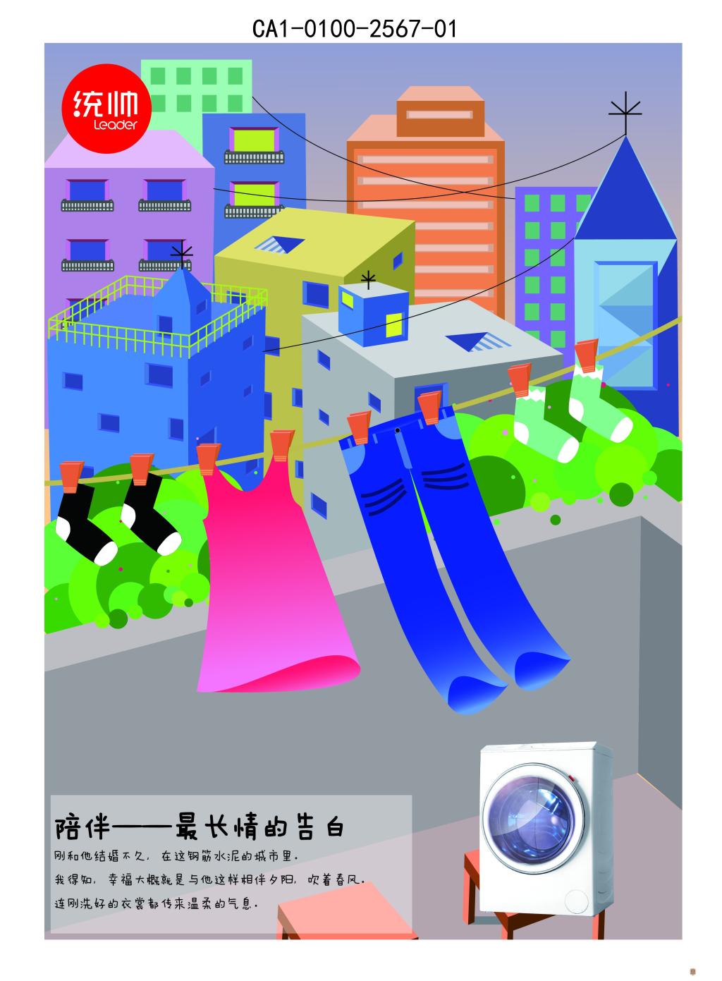 作品内容:用三幅不同场景的矢量插画,分别表现刚走出校园的新婚夫妻晾晒完衣物的场景,刚走入职场的女青年加班后在厨房吃完晚饭以后的场景,以及即将毕业的女大学生在单间房里复习时的不同生活场景。继而传达出品牌主题-轻时尚、悠生活,85后的小资生活状态。画面打造出一种在简单中创造,享受快乐的悠生活概念,借助产品带给85后不一样的生活体验。