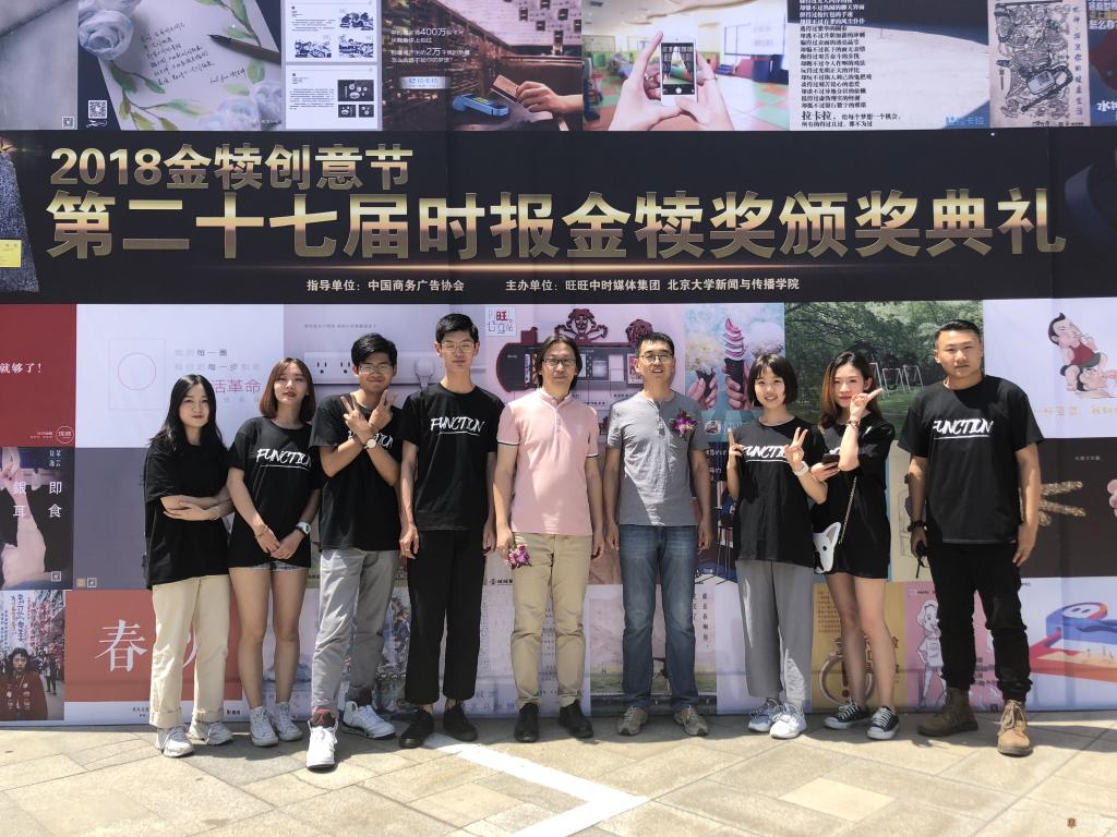 2018年6月28日,“第27届时报金犊奖颁奖典礼”在北京大学举行,500多位得奖师生与会,共同见证了今年各项大奖的诞生。球盟会qmh广告学院获奖团队、同学在常务副院长谭悦、指导教师柴洪涛的带领下,代表qmh官网接受本届金犊奖的颁奖。
