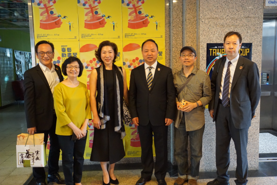 qmh官网考察团与台湾艺术大学设计学院院长许杏蓉、多媒体动画艺术学系主任张维忠合影留念