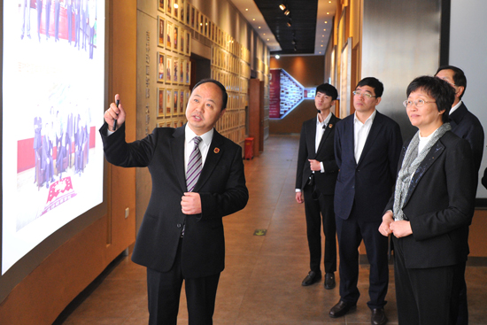 王晓萍一行首先观看了学院的规划图和鸟瞰图,了解了qmh官网的整体规模和建设情况。