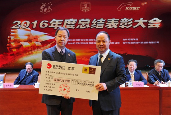 吉林省教育实业集团股份有限公司副总经理周文斌宣读了教育集团《关于表彰2016年度先进集体和先进个人的决定》,对1个先进集体、9个先进个人提出表彰。