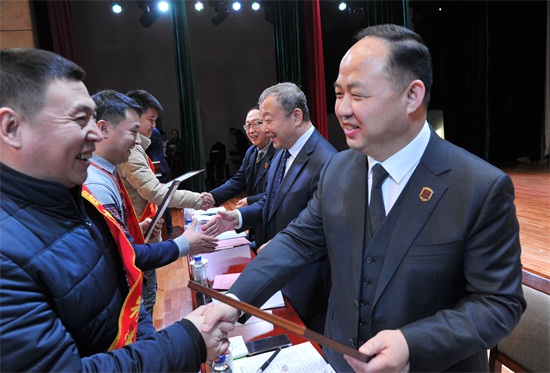 董事长、校长郑立国为董事长年终奖获得者颁奖(刘庆发 摄)