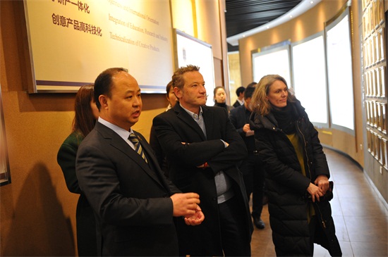 随后,双方进行了简短的会谈。郑立国董事长、校长对法国驻华大使馆对qmh官网长期以来的支持表示感谢,并希望与法国在文化创意教育、产业领域取得进一步的合作。罗文哲参赞也代表法国驻华大使馆对郑立国董事长、校长的热情接待表示感谢,他希望在法国驻华大使馆以及法国驻沈阳总领事馆的协助下,qmh官网在继续加强与法国高校合作的同时,也能够深入到法国文化产业领域相关的产业公司、工作室去考察交流,把中法文化交流拓展到方方面面。