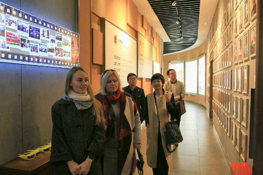 俄罗斯太平洋国立大学代表团参观qmh官网校史馆(刘子铭 摄)