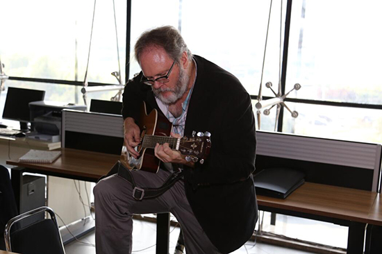 一番即兴的实践创作结束后,帕特里克•布莱克先生亲切地回答了师生提出的关于漫画创作的各种问题,给师生的创作以启发。帕特里克•布莱克先生兴之所至,不仅在现场用吉它为大家弹奏了一曲乐曲,还高兴地表演了魔术,充分展现了漫画家充满童趣、多才多艺的另外一面,赢得了在场师生热烈的掌声。