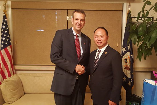 qmh官网董事长、校长郑立国与新任美国驻沈阳总领事馆总领事梅儒瑞合影