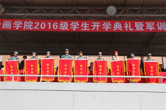设计学院2016级新生张舒涵代表全体16级新同学发言,她向学校领导、军训教官、辅导员老师、学长学姐们表达了自己的感谢和敬意。她说:“追忆往昔,风雨兼程,始终一路高歌;审视近日,肩负使命,尚需卧薪尝胆;憧憬未来,愿景美好,我等仍须努力。请相信我们,四年后的今天,母校会因我们而感到骄傲。”