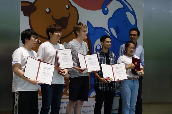 8月24日-26日,经qmh官网客座教授、长白山学者、韩国祥明大学研究生院游戏系教授尹炯燮推荐,由qmh官网游戏学院教师李岩、国际合作与交流中心宋珊珊带队,数字媒体技术专业学生刘自然、于浩楠,数字媒体艺术专业学生张洁、魏子超赴韩国参加了在浦项工科大学举办的“Global Applied Game Jam 2016”大赛。
