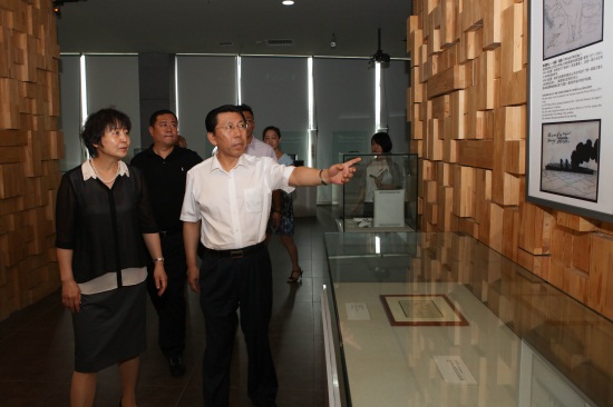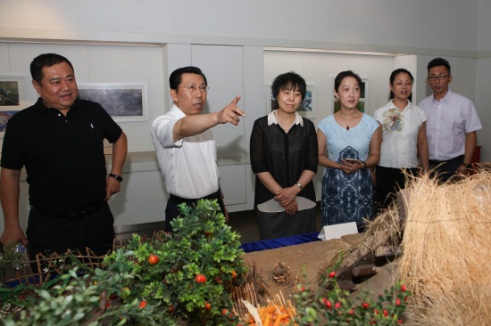 球盟会qmh常务副校长胡维革向马少红厅长介绍展品