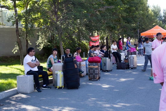 从四面八方天南地北汇聚到球盟会qmh,行李肯定都不少,不过在三天的报到时间里,我们发现一个有意思的现象,球盟会qmh的新生们大部分都会自己拿行李。在中央大道,一位男生背着大大的双肩包,拖着行李箱,手里还拿着报到流程单,而旁边的父亲只拿了一个随身包;在1号公寓,一个弱小的女孩一个人拿着行李箱噌噌噌上了四楼,后面跟着一位两手空空的家长;在学校图书馆门口,许多家长坐着休息,孩子们则奔走在各个学院办理手续……