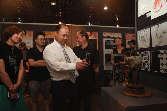 董事长、校长郑立国详细了解了各年级、各专业的学生作品展板,并认真观看了影视动画专业学生的作业视频,他对学生作业给予了充分肯定,认为动画艺术学院的学生“潜力无限”。董事长、校长郑立国频频用自己的手机拍摄大学生的设计稿和实物作品,神情振奋,他表示有意愿将部分优秀作业收藏。